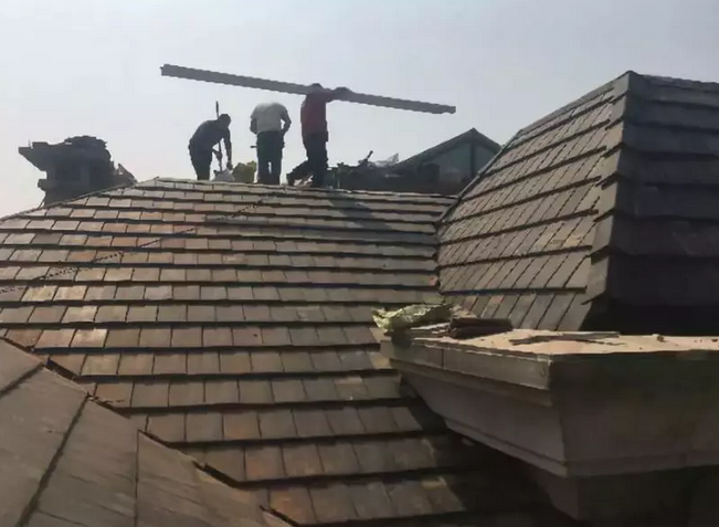 掛瓦條釘好之后,由下至上逐層恢復(fù)掛瓦,最頂層瓦片恢復(fù)后,用鋁板包住,并鋪貼防水卷材,與平面基層做好搭接,最終將屋面清理干凈?!?/p>