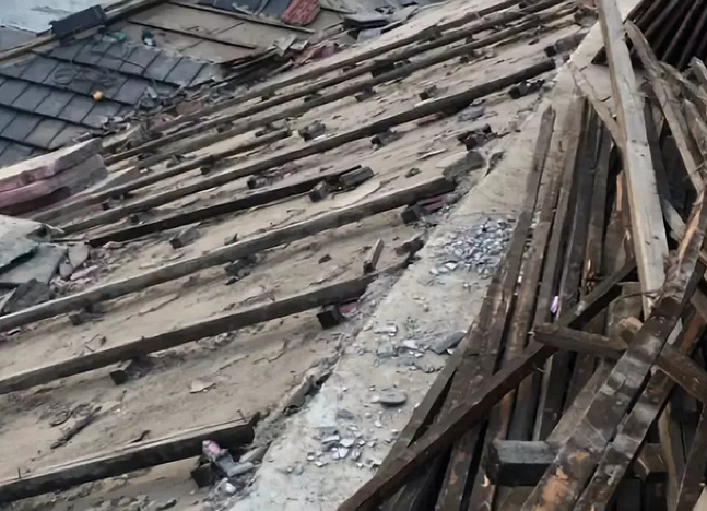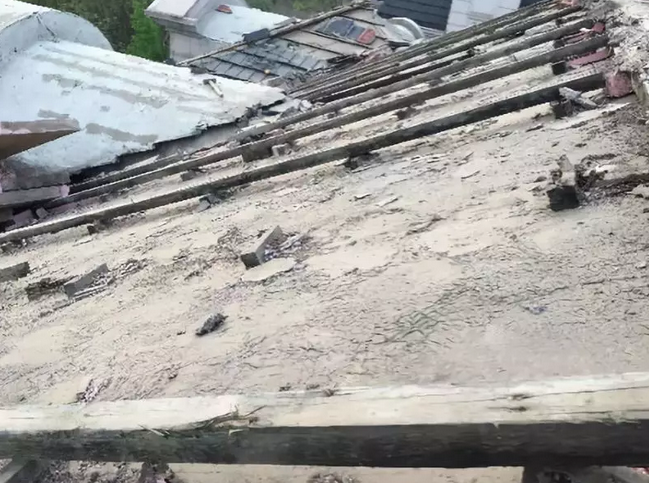 1) 工人系好安全繩,拆除屋面瓦、保溫板,鏟除木龍骨、原防水層至堅實基層,拆除的瓦、保溫板集中堆放在指定地點,可進行二次利用;