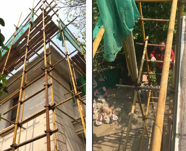 ▲別墅外圍搭設(shè)鋼管架