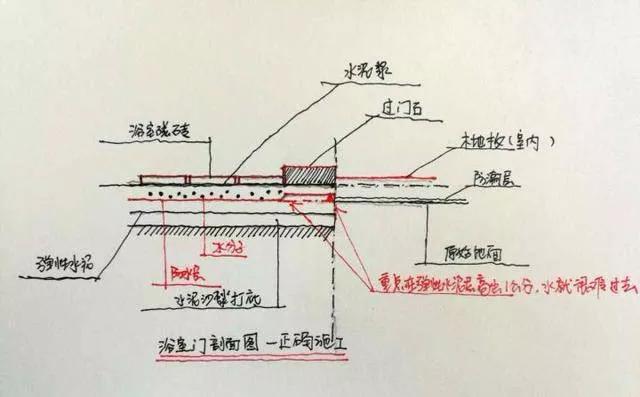 這浴室過門石防水主要是由彈性水泥負責,不過在做這個之前,要先在你拆除的地方做好砂漿水泥,然后在上面再刷兩遍彈性水泥,隨后等干了之后就可以貼過門石了!