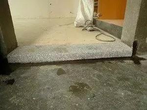 “ㄇ”型的人造石門檻石安裝,在這一定要注意要特別的交代內測的防水砂漿,一定要填滿!其防水砂漿時最好用那些不含水的水泥砂漿,然后在里面加上防水劑就好了,千萬別加水哦!重點在填滿門檻內部空間,即可擋住虹吸效應。再用將門檻安裝好。